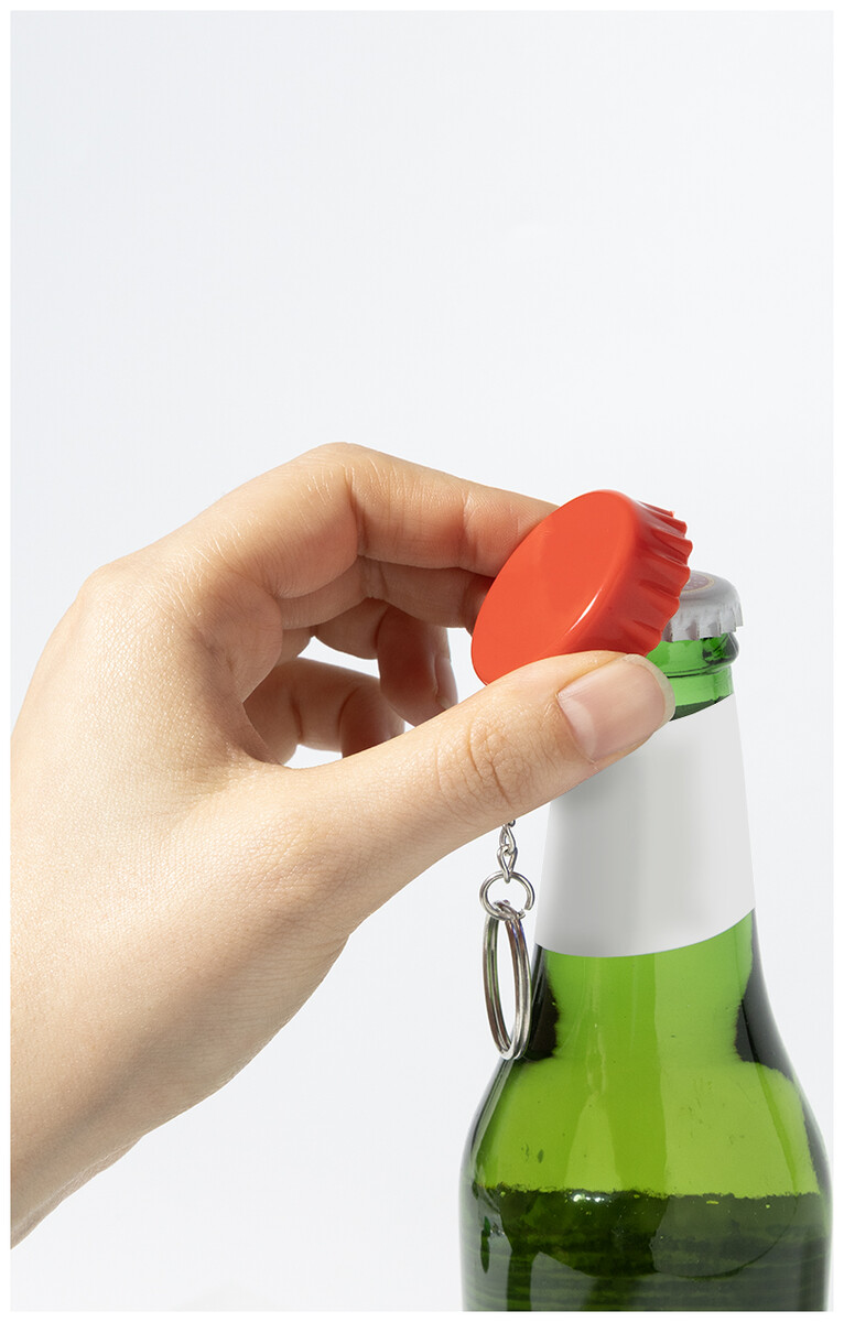 RABS přívěšek na klíče s otvírákem na lahve Popcap, červená
