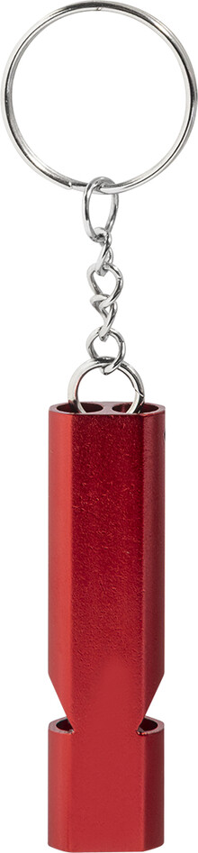 Píšťalka z recyklovaného hliníku s kovovým kroužkem na klíče.