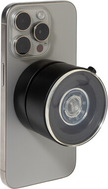 Magnetický držák na mobil do auta z recyklovaného ABS materiálu s přísavkou. Včetně samolepicího kovového kroužku pro telefony bez magnetického povrchu.