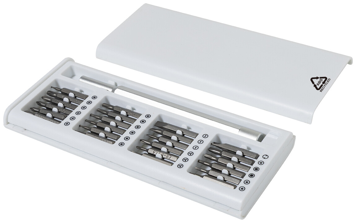 Sada přesných šroubováků s 24 bity v pouzdře z recyklovaného ABS plastu. Rukojeť šroubováku je vybavena magnetickým uchycením bitů pro rychlou a bezpečnou výměnu bitů.