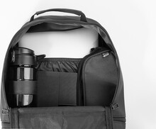 Voděodolný batoh z RPET s hlavní přihrádkou na zip, polstrovanou přihrádkou na notebook (13"), spodní přihrádkou na zip a skrytou boční kapsou. S polstrovanými zády a ramenními popruhy. Polyester 600D RPET s PU zátěrem a výrazným štítkem RPET.