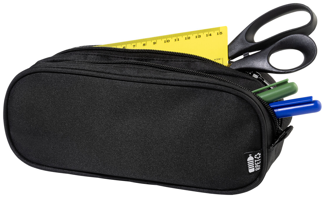 Pouzdro na pera z RPET polyesteru se zipem a 2 přihrádkami. 300D RPET polyester s RPET štítkem.