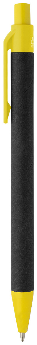 Kuličkové pero z recyklovaného papíru s černým tělem a recyklovanými ABS díly. S modrou náplní.