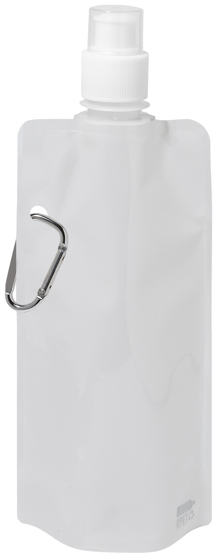 Skládací sportovní láhev z RPET s víčkem na pití a hliníkovou karabinou, 500 ml. Bez BPA. Nevhodná pro sycené nápoje.