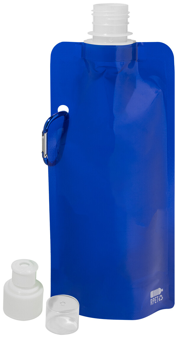 Skládací sportovní láhev z RPET s víčkem na pití a hliníkovou karabinou, 500 ml. Bez BPA. Nevhodná pro sycené nápoje.
