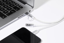 Nabíjecí kabel USB-C z recyklovaného hliníku a RPET s přívěskem na klíče. S konektory micro USB, USB-C a Lightning. S USB a USB-C vstupy.
