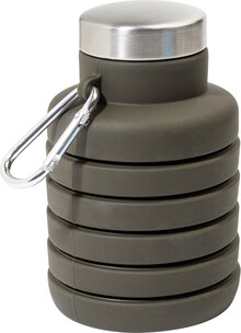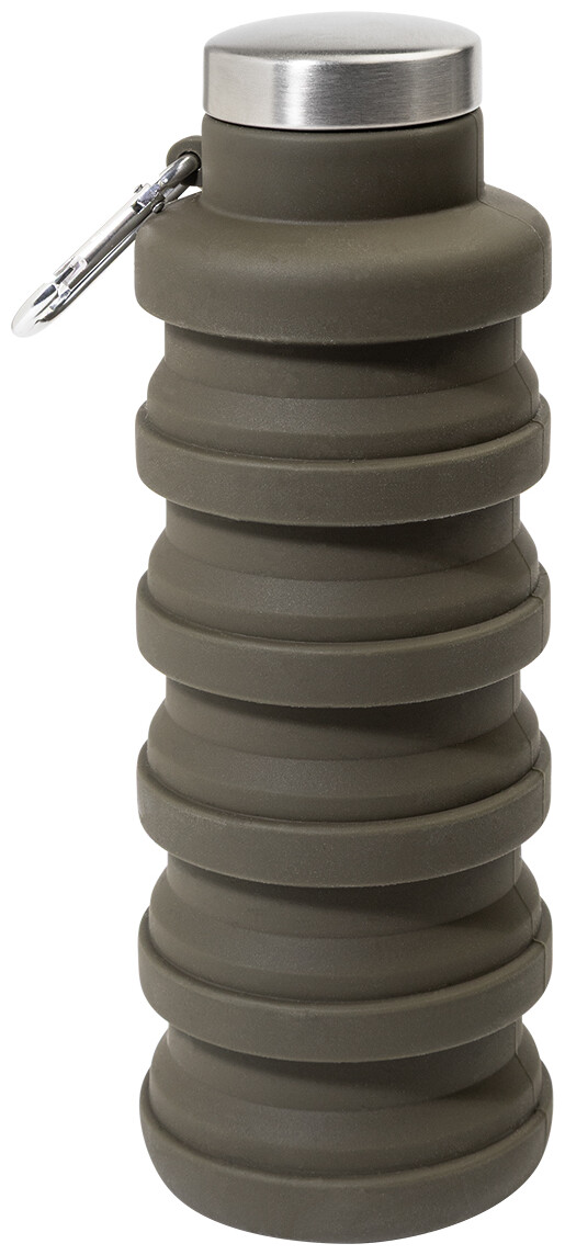 Skládací silikonová láhev s víčkem z nerezové oceli a hliníkovou karabinou. 500 ml