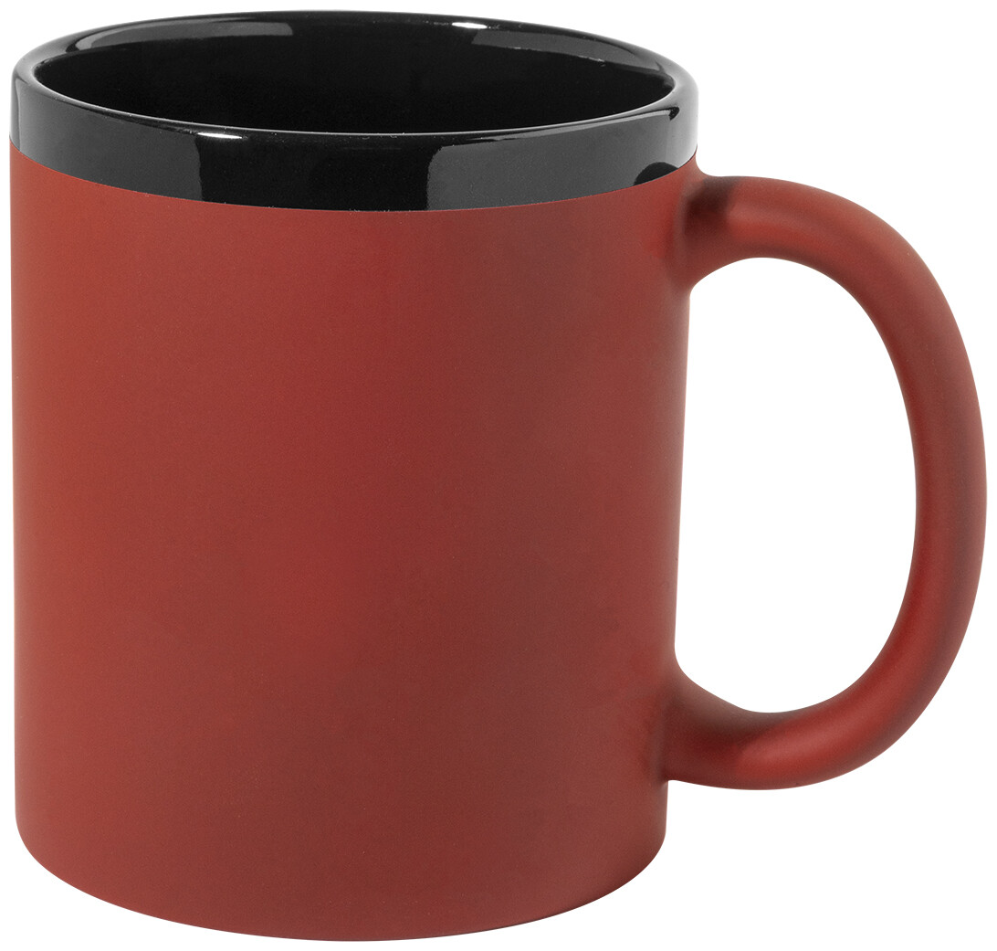 Keramický hrnek s měkkým pogumovaným povrchem a černým vnitřkem a okrajem, 300 ml. Se speciálním povrchem pro gravírování, gravírované logo ladí s barvou na vnitřní straně. V krabičce z kraftového papíru.
