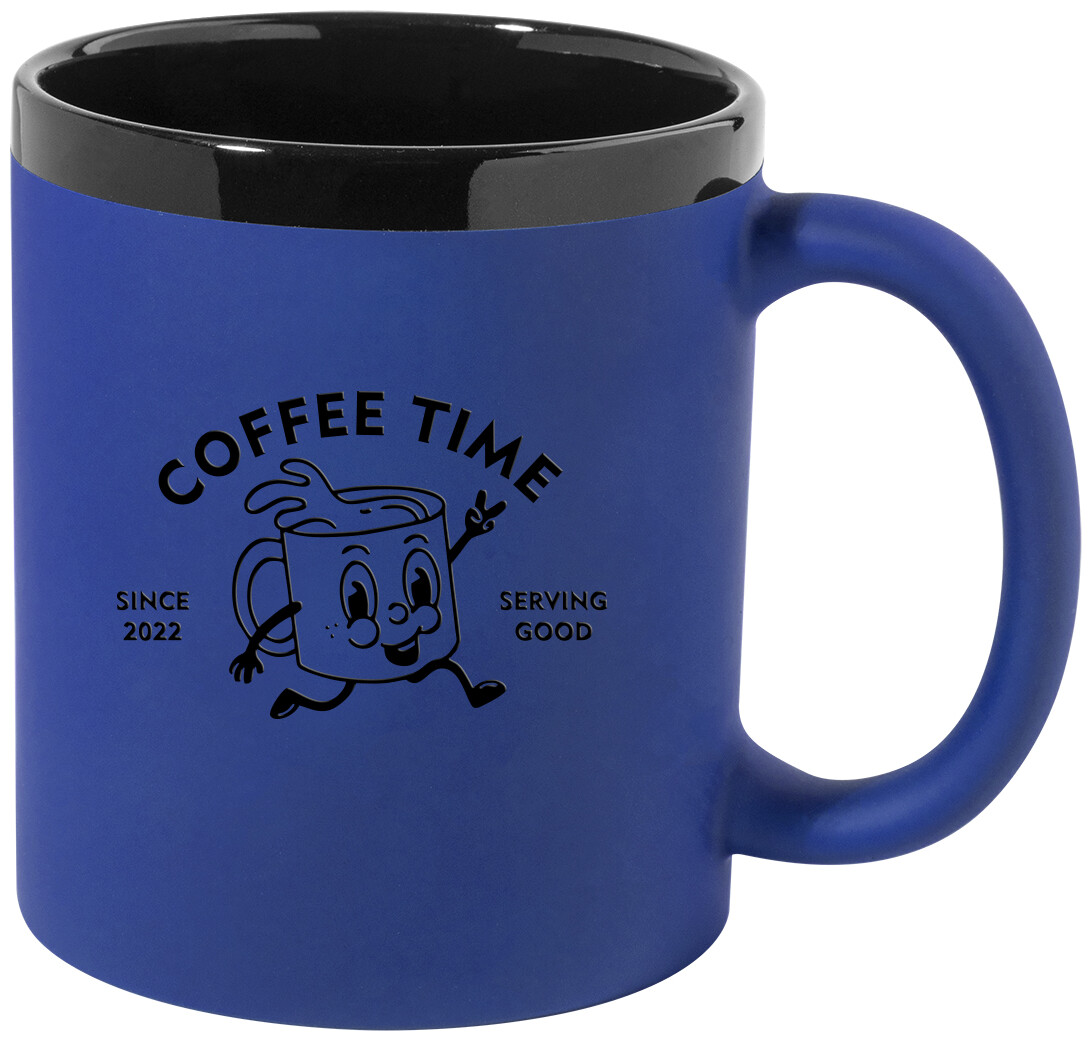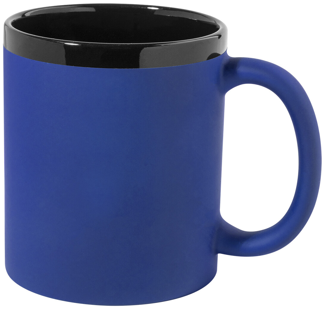 Keramický hrnek s měkkým pogumovaným povrchem a černým vnitřkem a okrajem, 300 ml. Se speciálním povrchem pro gravírování, gravírované logo ladí s barvou na vnitřní straně. V krabičce z kraftového papíru.