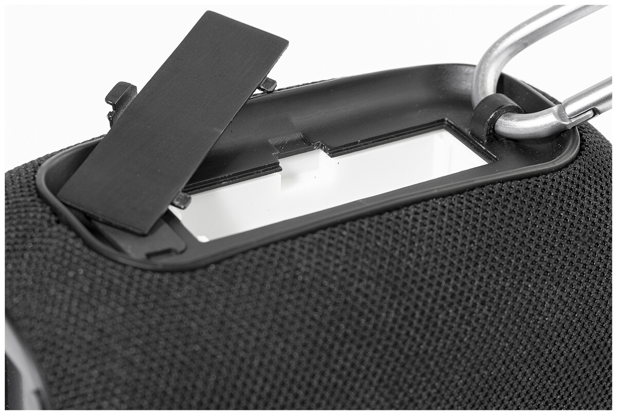 Bezdrátový reproduktor z recyklovaného ABS plastu s RPET polyesterovou síťovinou, hliníkovou karabinou a kovovým štítkem pro logo. S vestavěnou dobíjecí baterií (1800 mAh). Včetně USB nabíjecího kabelu.