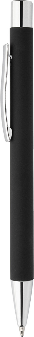 Kuličkové pero z recyklovaného hliníku s černým pogumovaným tělem a barevnými lesklými kovovými částmi. Se speciálním povrchem pro zrcadlové gravírování, které ladí s kovovými částmi. S modrou náplní.