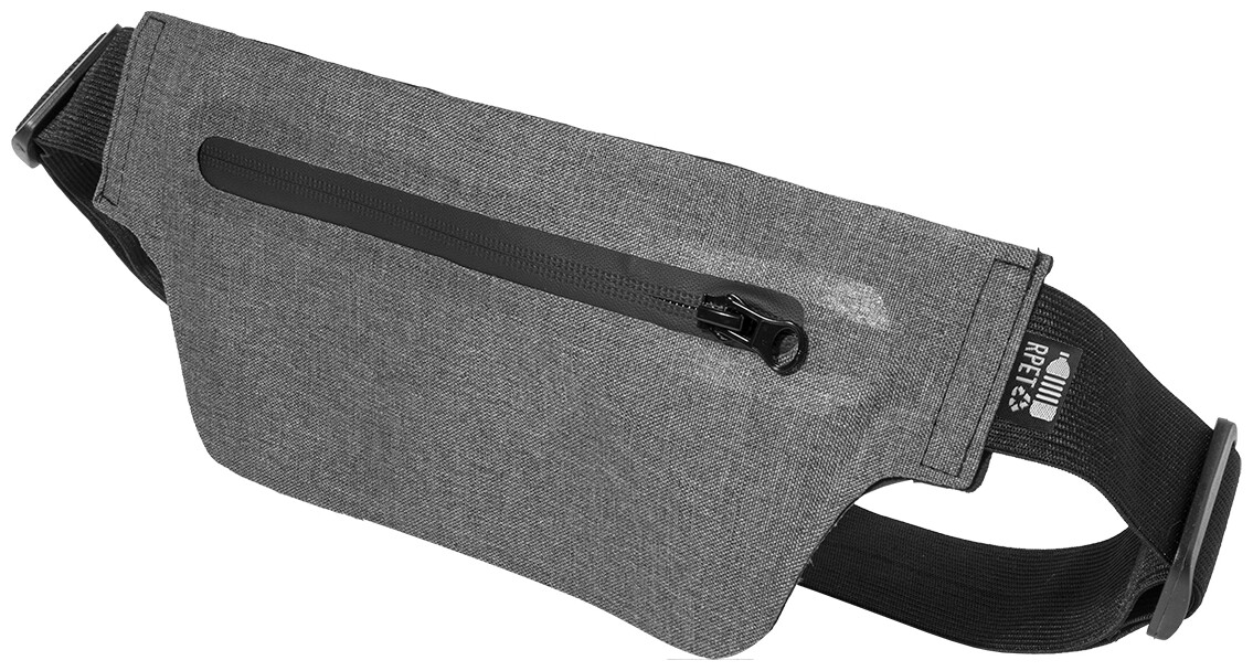 Úzká ledvinka z RPET s přihrádkou na zip a nastavitelným elastickým popruhem. 300D RPET polyester s charakteristickým štítkem RPET.