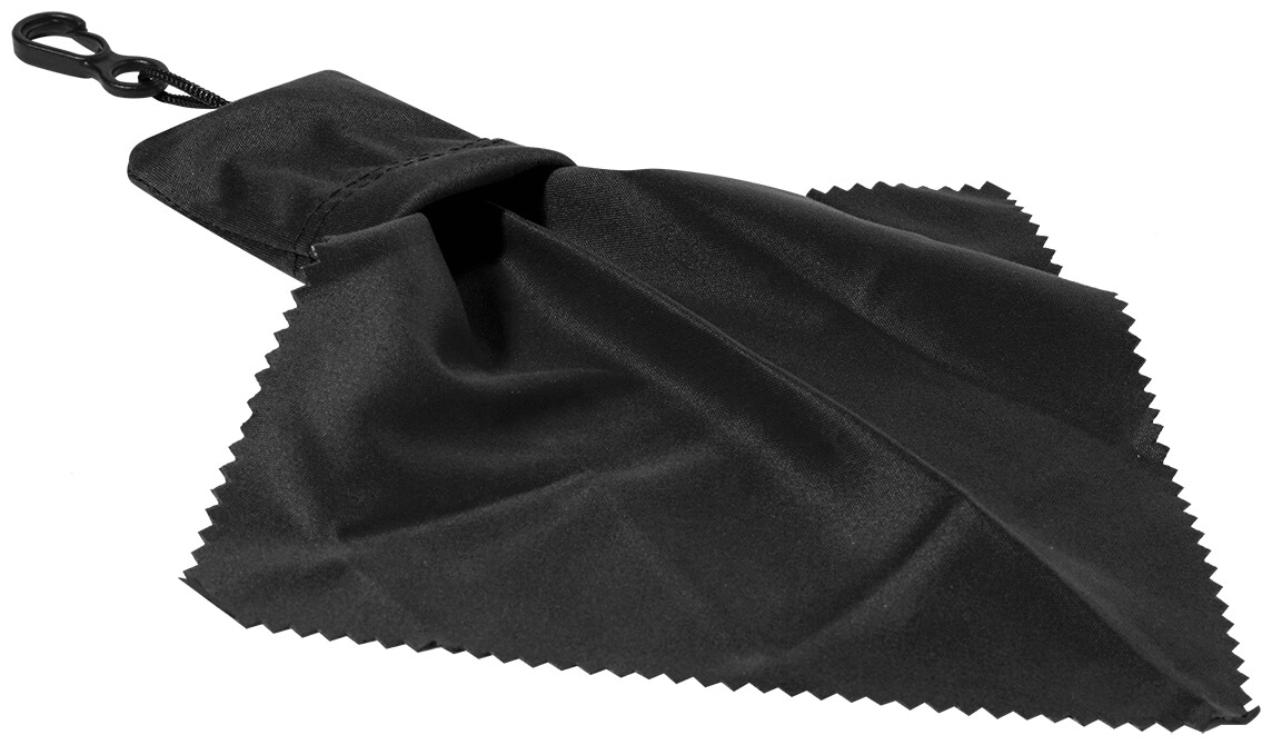 Čisticí hadřík ze 100% RPET mikrovlákna (220 g/m2) na brýle a obrazovky. Přenosné pouzdro z odpovídajícího materiálu s PP karabinou. Rozměr hadříku: 15×15 cm.