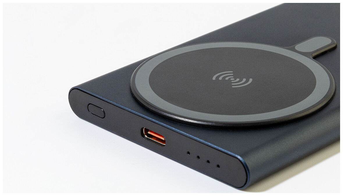 Power banka z recyklovaného hliníku s vestavěnou magnetickou bezdrátovou rychlonabíječkou (15 W) a 5000 mAh baterií. Se vstupem USB-C a portem pro nabíječku. Obsahuje samolepicí kovový kroužek pro použití magnetické funkce na jakémkoli bezdrátovém nabíjecím zařízení. Kompatibilní s iPhone® 12 nebo novějším. USB nabíjecí kabel součástí.