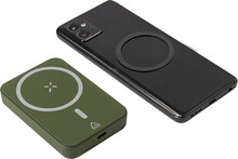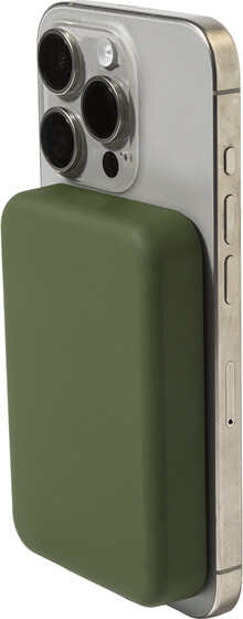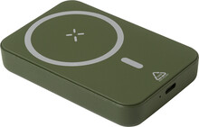 Power banka z recyklovaného ABS s 5000 mAh baterií a vestavěnou magnetickou bezdrátovou nabíječkou (5W). Se vstupem USB-C a portem pro nabíječku. Včetně samolepícího kovového kroužku pro použití magnetické funkce na jakémkoli bezdrátově nabíjecím zařízení. Kompatibilní s iPhone® 12 nebo novějším. Včetně USB nabíjecího kabelu.