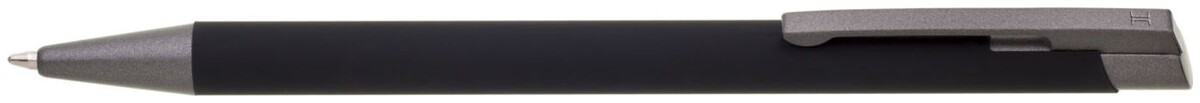 Dárková sada černé propisky a mikrotužky s pogumovaným povrchem a šedými doplňky v luxusním dárkovém pouzdru s průhledným okénkem.