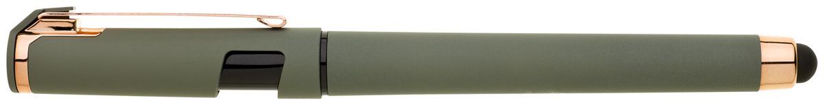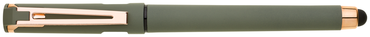 Elegantní gelové pero ROSEO SOFT GEL se soft povrchem, touch koncovkou a doplňky v růžovo-zlaté barvě. Pero má gelovou velkoobsahovou náplň, která píše modře.