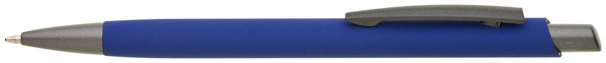 LIVOX SOFT RE – kovová propiska s pogumovaným soft povrchem z recyklovaného hliníku. Propiska má matné šedé doplňky. Náplň velkoobsahová, modře píšící.