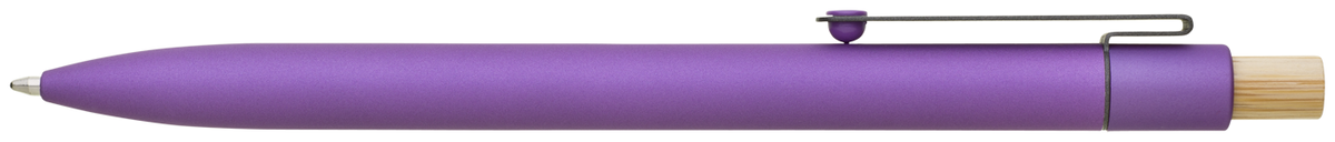 BRANIX SOFT RE designová kovová propiskas matným soft povrchem z recyklovaného hliníku. Propiska je doplněna tmavým kovovým klipem a bambusovým cvakátkem. Velkoobsahová náplň píše modře.