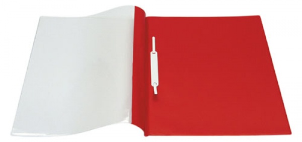 Rychlovazač A4 PVC, zadní strana z pevné lepenky potažená PVC fólií. Na přední straně průhledná kapsa A4 na zasunutí dokumentů. Balení 50 ks. Barva: červená.
