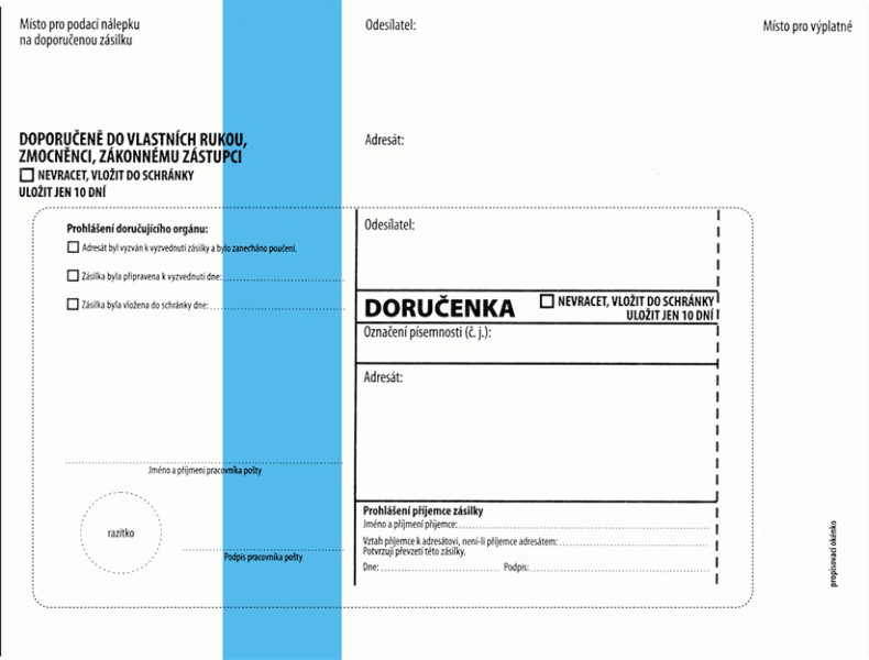 Vlhčící, modrý pruh, s poučením, správní řád.