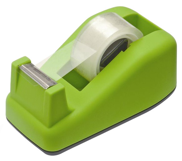 Odvíječ lepicí pásky, pevná konstrukce s účinnou protiskluzovou podložkou, jemný povrch, maximální velikost pásky 19 mm x 33 m, dodáváno včetně 1 pásky. Barva: limetkově zelená.