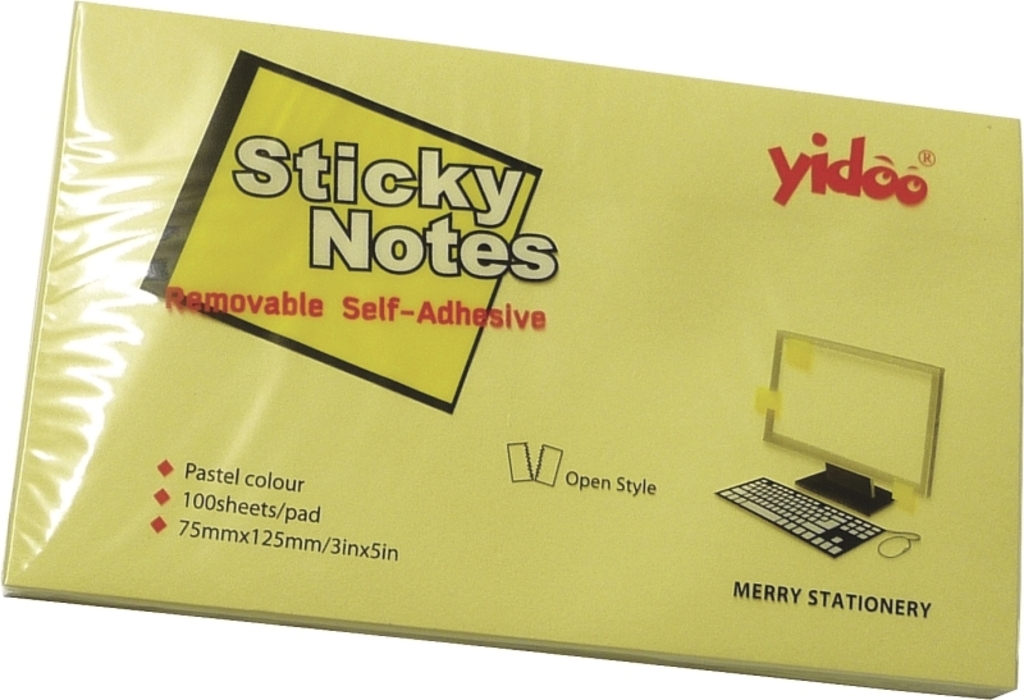 Samolepící bloček žlutý obsahuje 100 listů, které mohou být opakovaně použity. Listy nezanechávají stopy po použití a samovolně se neodlepují.