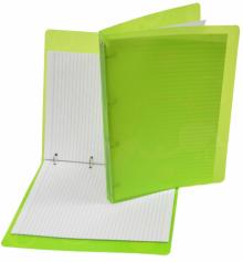 Záznamník se čtyřkroužkovou mechanikou, náplň 70 linkovaných listů, formát A4, moderní design. Barva: zelená.