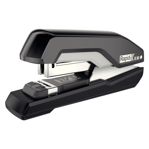Prémiový sešívač s patentovaným super plochým sešíváním SuperFlatClinch™, které šetří místo při zakládání dokumentů o 40 %. Kapacita: 50 listů. Hloubka vkládání: 40 mm. Na drátky Rapid Super Strong 24/8+ a 26/8+. Ploché a nástěnkové sešívání. Barevné provedení: černé.