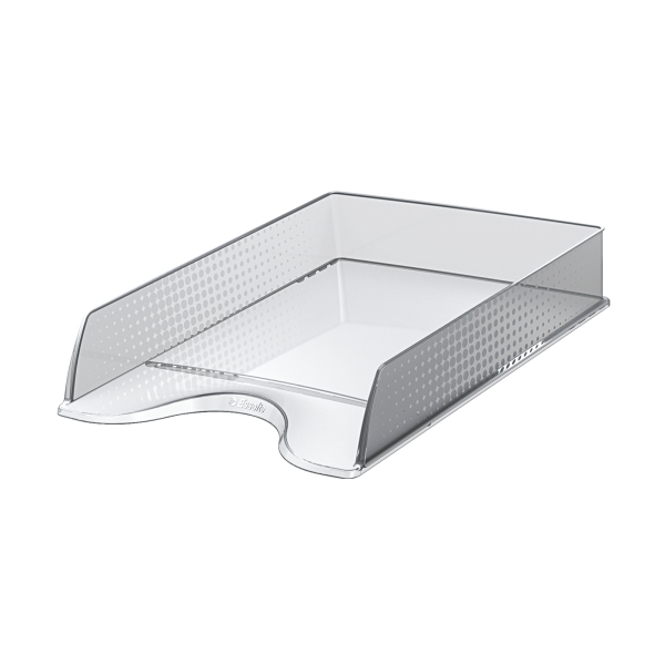 Moderní odkladač pro uložení dokumentů formátu A4 na pracovním stole s unikátním embosovaným povrchem v klasických barvách. Barva: čirá.