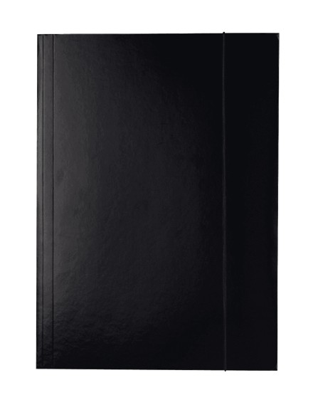Kvalitní pevný karton z vnější strany lesklý. Prolisy na chlopních a hřbetu zvyšují jejich kapacitu pro uložení objemnějších dokumentů. Barva: černá.