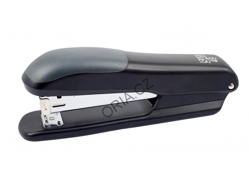 Standardní stolní sešívač s kovovým zásobníkem a jednoduchým vedením sponek. Sešívací výkon 25 listů papíru, hloubka vložení 65 mm, spony 24/6 a 26/6. Možnost pevného či volného sešití.