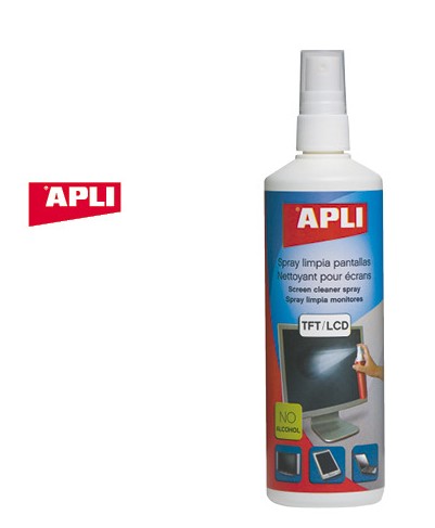Apli čisticí sprej na obrazovky TFT/LCD 250 ml pro odstranění nečistot, prachu, otisků prstů z displeje monitorů, laptopů, klávesnic, kopírek, plastových skříní a krytů. Neobsahuje alkohol.