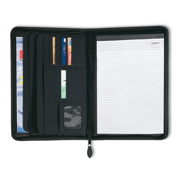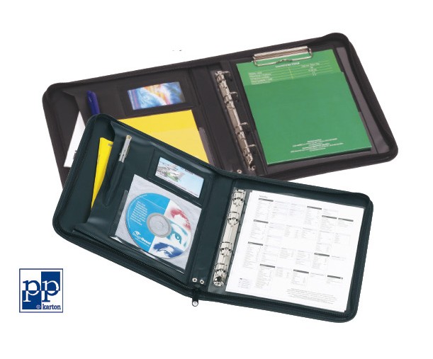 Konferenční desky A5 jsou určeny pro každého kdo potřebuje působit reprezentativně a to i v těch nejdrobnější detailech. Desky jsou potaženy imitací kůže a opatřeny 4 kroužkovým systémem, Naleznete zde kapsy na vizitky, přihrádky, úchyty na tužku. V neposlední řadě pak jistě oceníte uzavření desek na zip.