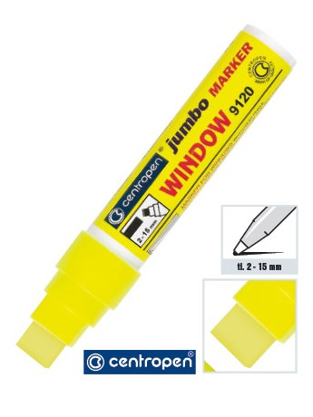 Bezvadně kreslí na sklo! Velkoobsahové značkovače Jumbo jsou vhodné k popisování oken, výloh, zrcadel a automobilových skel. Díky velké krycí schopnosti a zářivým barvám inkoustu jsou nápisy velmi dobře viditelné i z velké dálky. Značkovače jsou plněny tekutou křídou na vodní bázi, která rychle zasychá a lze ji snadno setřít suchým nebo vlhkým hadříkem. Šíře stopy 2 - 15 mm.
