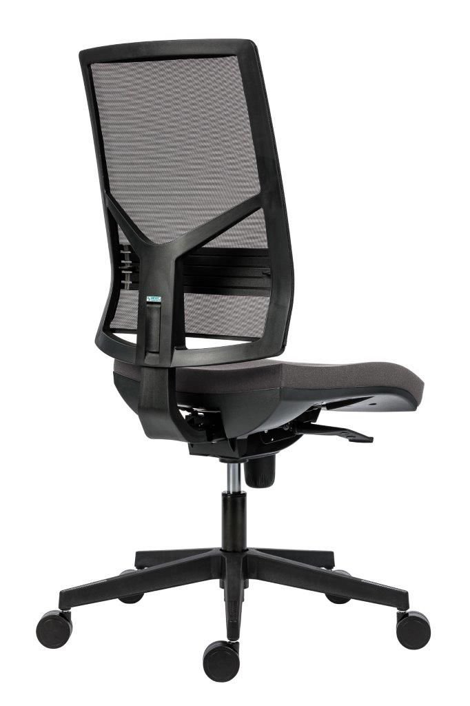 židle s vysokým síťovaným opěrákem a výškově nastavitelnou bederní výztuhou, volitelný podhlavník se sítí nebo čalounem výškově a uhlově nastavitelný, možnost doplnění ramínka na oděv, nastavení výšky opěráku s uzamykáním, čalounění ze studené pěny, nový design sedáku s výrazným zaoblením přední hrany a robustní výškou pro maximální pohodlí synchronní mechanismus s čtyřnásobnou aretací, automatickým nastavením síly protiváhy a nastavením hloubky sedáku, plastová báze, kolečka pr. 60 mm pro měkké podlahy, volitelné područky, nosnost 150 kg, český výrobek, záruka 60 měsíců