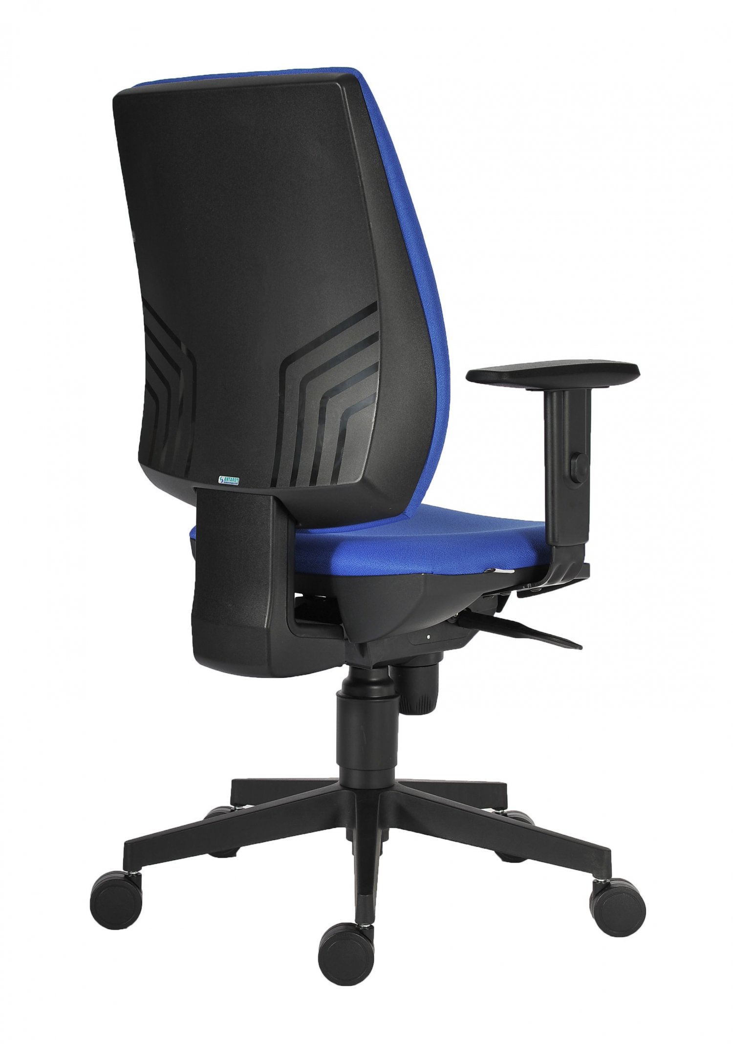 židle s vysokým kvadratickým opěrákem, synchronní mechanismus s čtyřnásobnou aretací, automatickým nastavením síly protiváhy a nastavením hloubky sedáku, moderní plastová báze, výškové nastavení opěráku mechanismem up-down, volitelné područky, kolečka pr. 60 mm pro měkké podlahy, nosnost 150 kg, český výrobek, záruka 36 měsíců