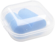 Barevné špunty do uší v průhledném, plastovém pouzdru, vyrobeno z EVA materiálu.
