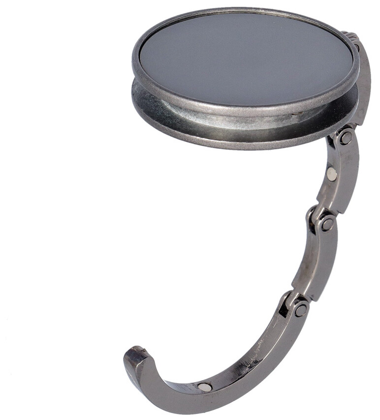 Kovový věšáček na tašku v barvě gun metal s lesklým povrchem. Magnetické zavírání.