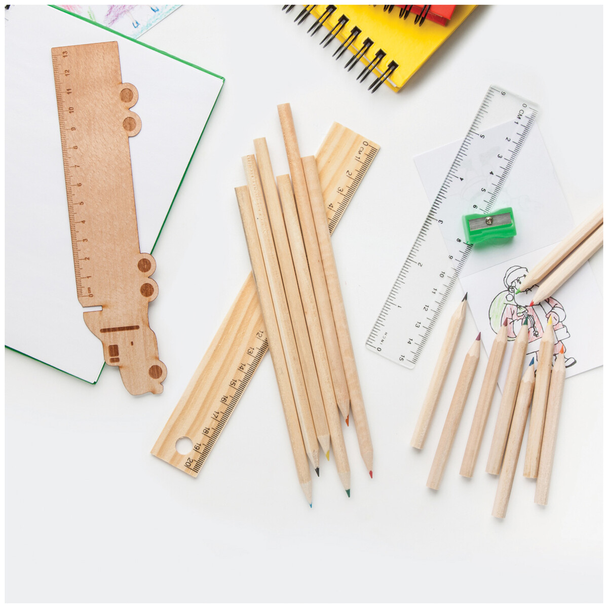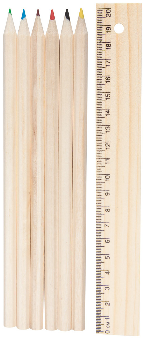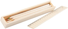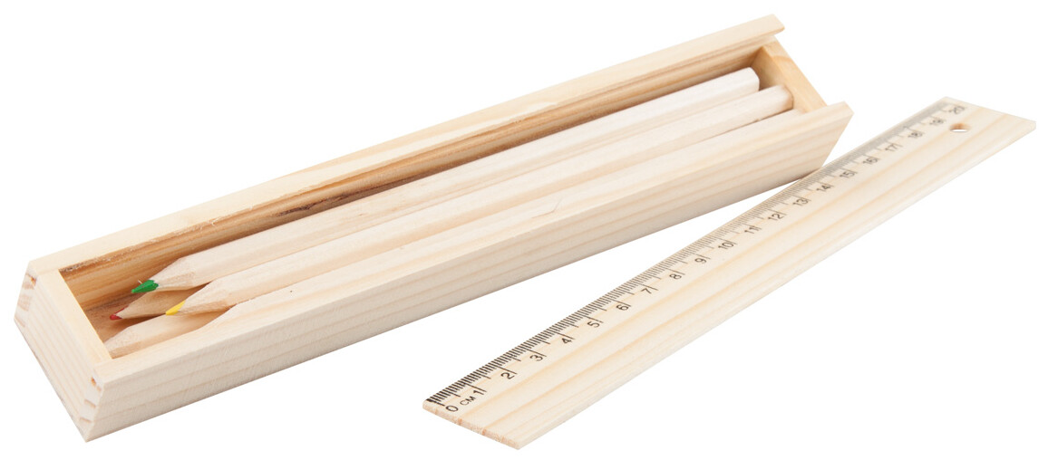 6-ti dílná sada pastelek v dřevěné krabičce s 20 cm pravítkem.