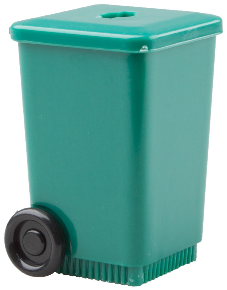 Plastové ořezávátko ve tvaru odpadkového koše.