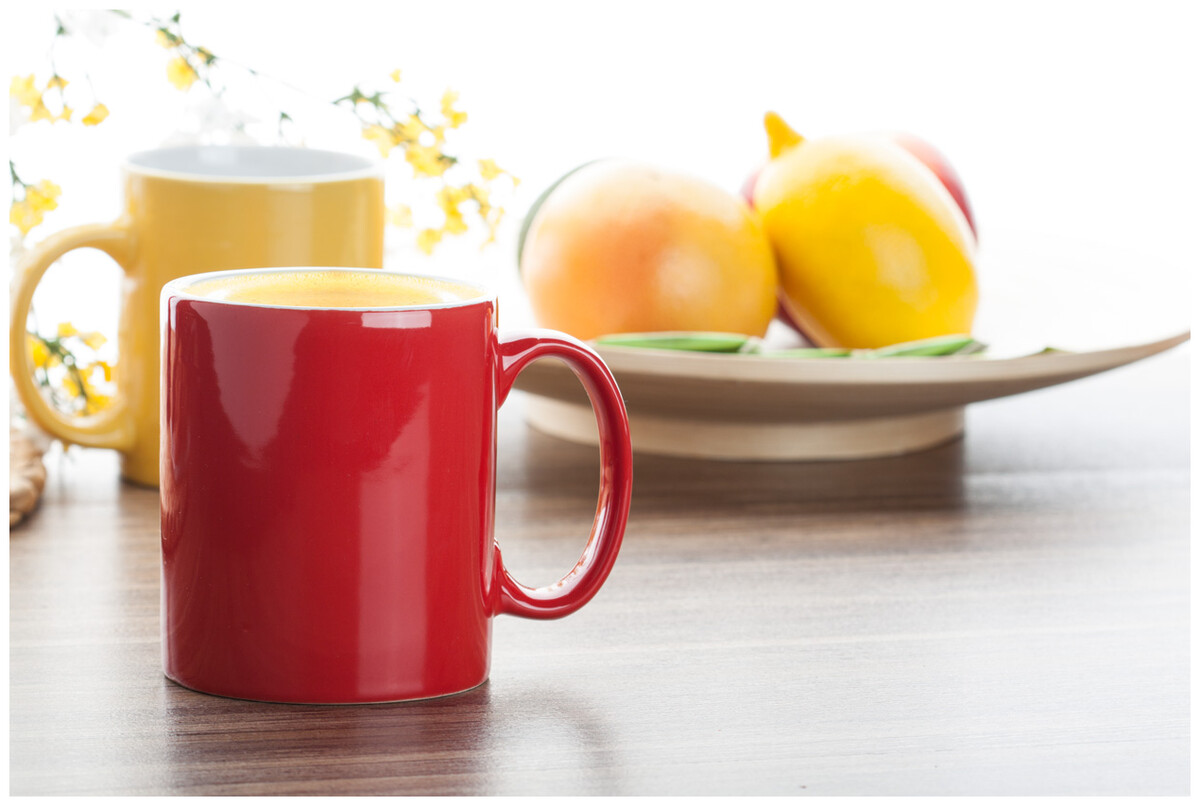 Barevný keramický hrnek, uvnitř bílý, 300 ml.