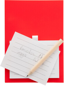 Barevná magnetka na ledničku se 40ti listým blokem a mini dřevěnou tužkou.