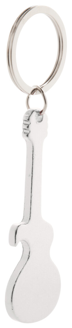 Hliníkový přívěšek na klíče ve tvaru kytary s otvírákem.