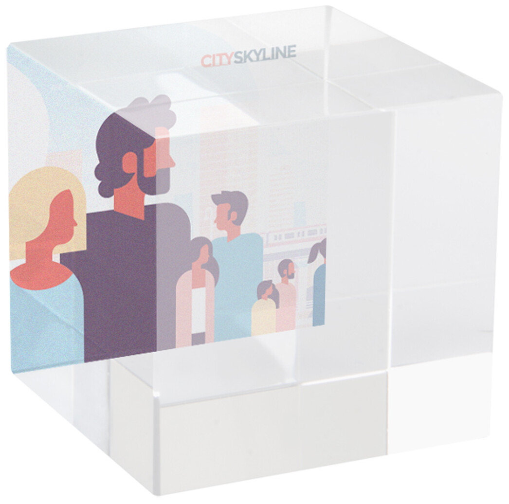Skleněná kostka. Dodáváno v tmavomodré magnetické dárkové krabičce.