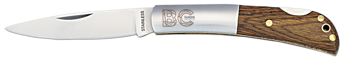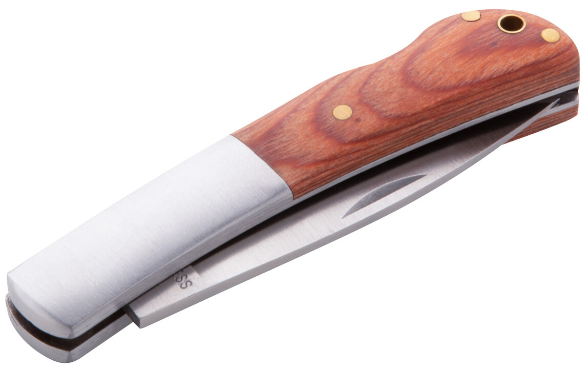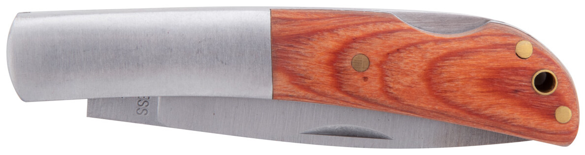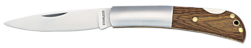 Kapesní nůž z nerez oceli s dřevěnou rukojetí.