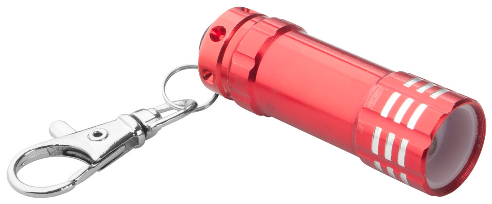 Mini hliníková baterka s 3mi LED diodami a karabinkou. Dodáváno s baterií.