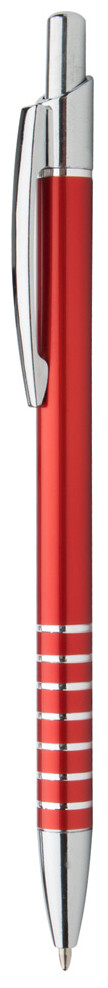 Hliníkové kuličkové pero s kovovým klipem a chromovanou špičkou a vrškem. Dodává se s modrou náplní.