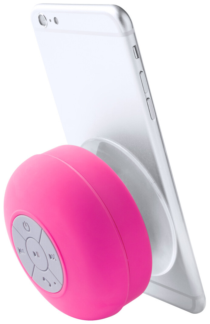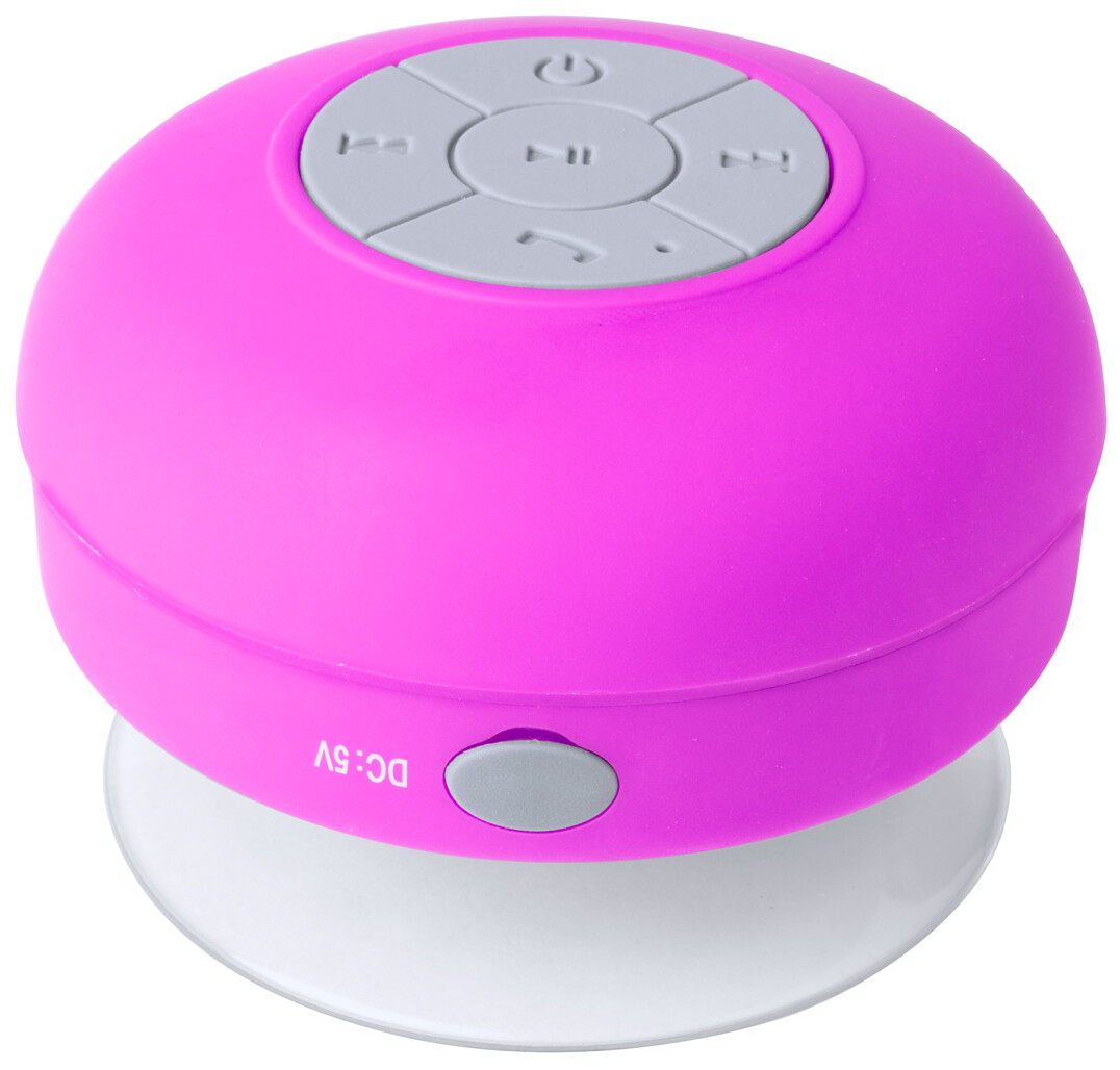 Bezdrátový reproduktor s pogumovaným krytem a velkou přísavkou. S funkcí hands-free volání a vestavěnou dobíjecí baterií. Včetně nabíjecího kabelu USB.