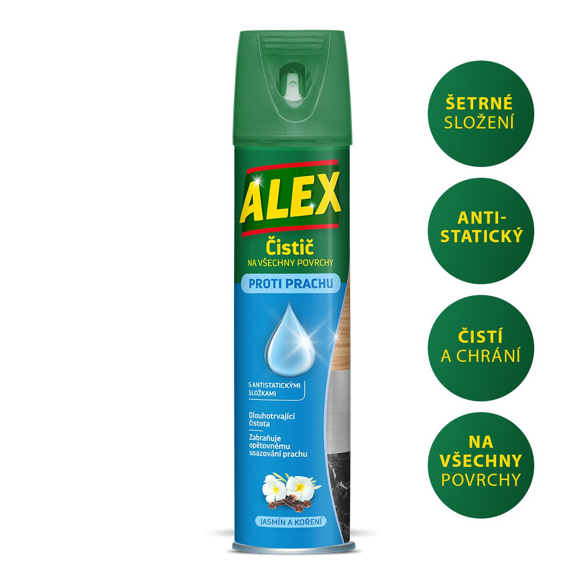 Prostředek proti prachu Alex, na všechny povrchy, ve spreji, jasmín a kořen, 400 ml